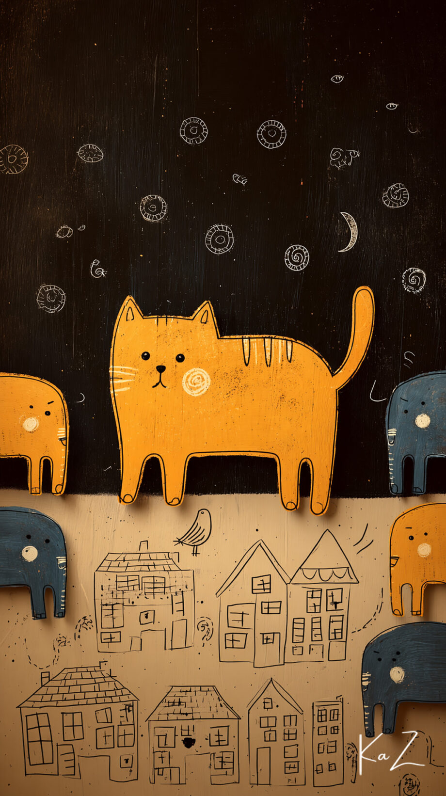 黒ねこが町を連れてくる