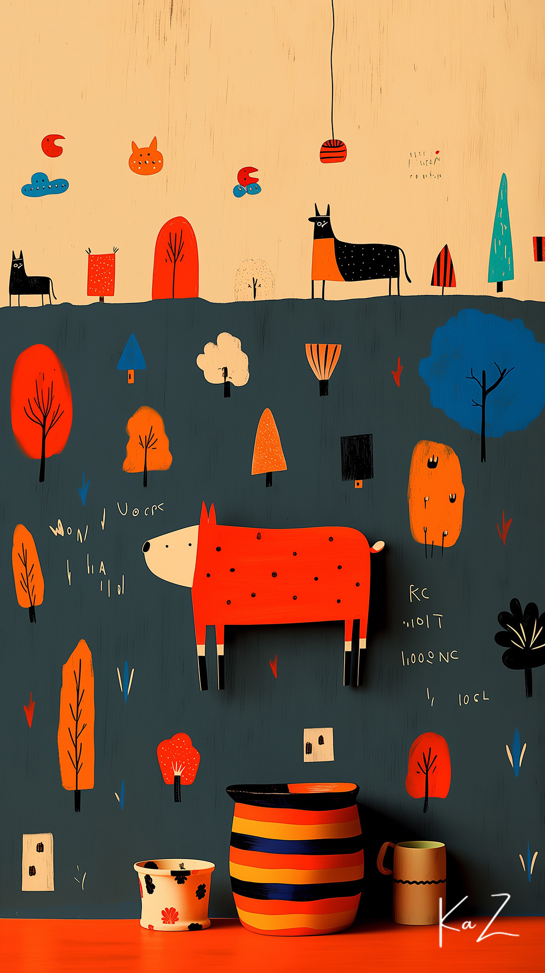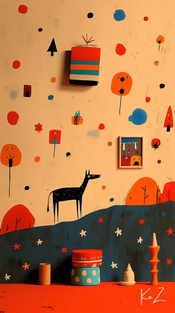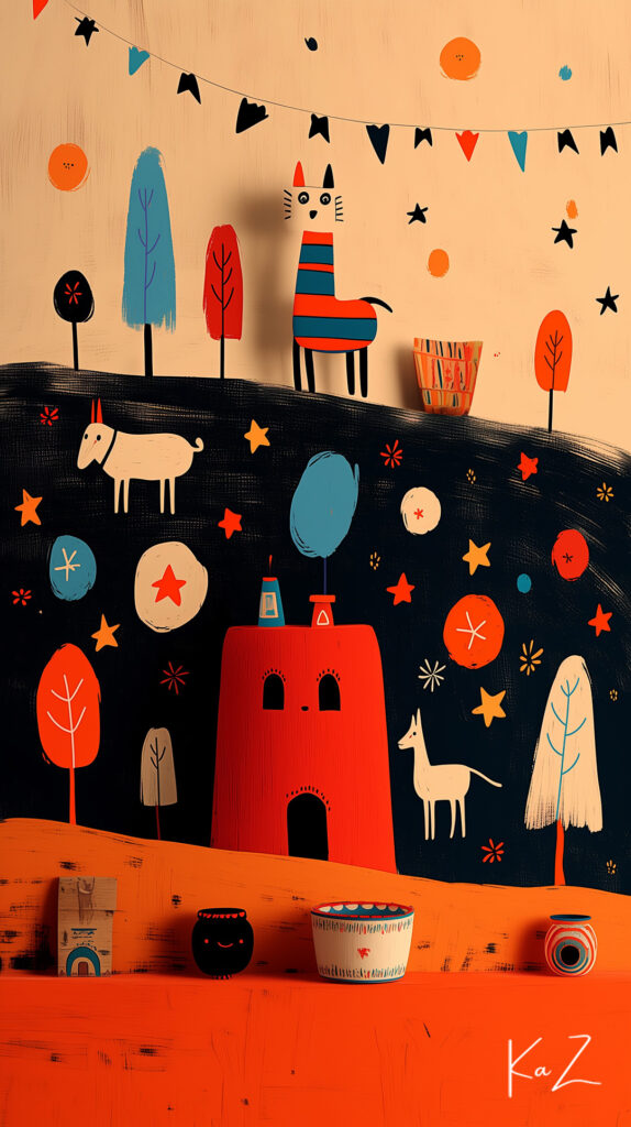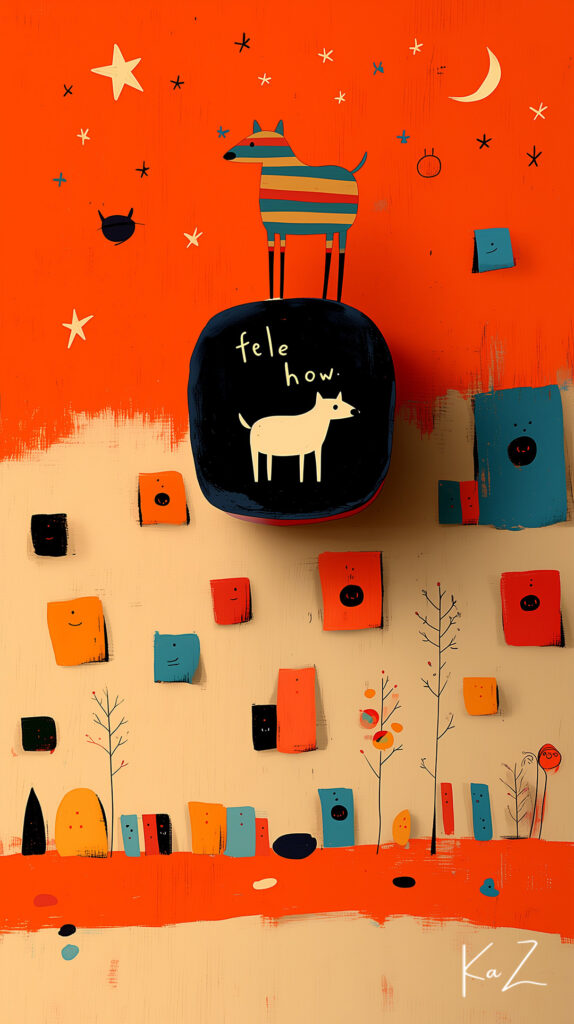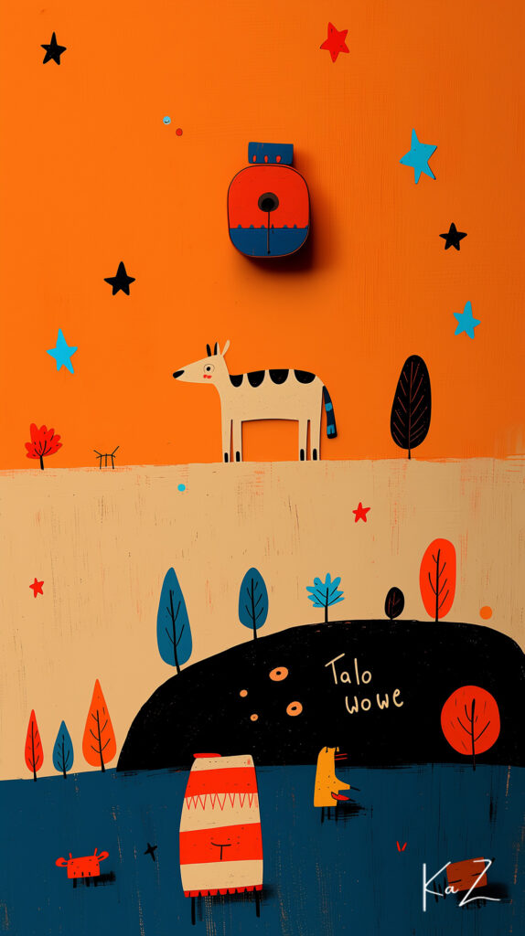 あかい塔と 夜のひみつ 丘のうえの くろい番犬 森をわたる あかいどうぶつ 壁いっぱいの 星の記憶 高い棚の しずかな見張り ほしをのせた しましまの丘 夜に灯る やさしい角 いすのとなりの 月あかり あかい森の ゆめの鹿 空をあずかる 白いけもの